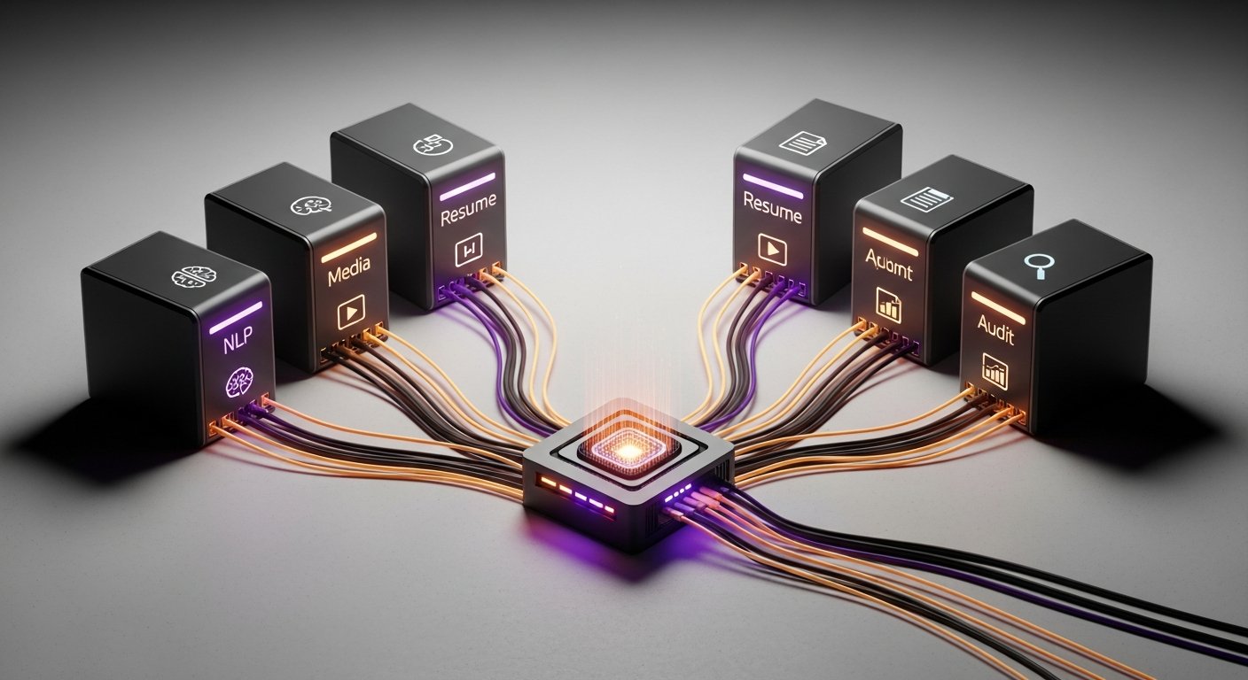 The alternative to discrete capability servers is a monolithic tool service — one large backend that handles resume parsing, video processing, NLP, job search, and everything else. We rejected this for three reasons:
